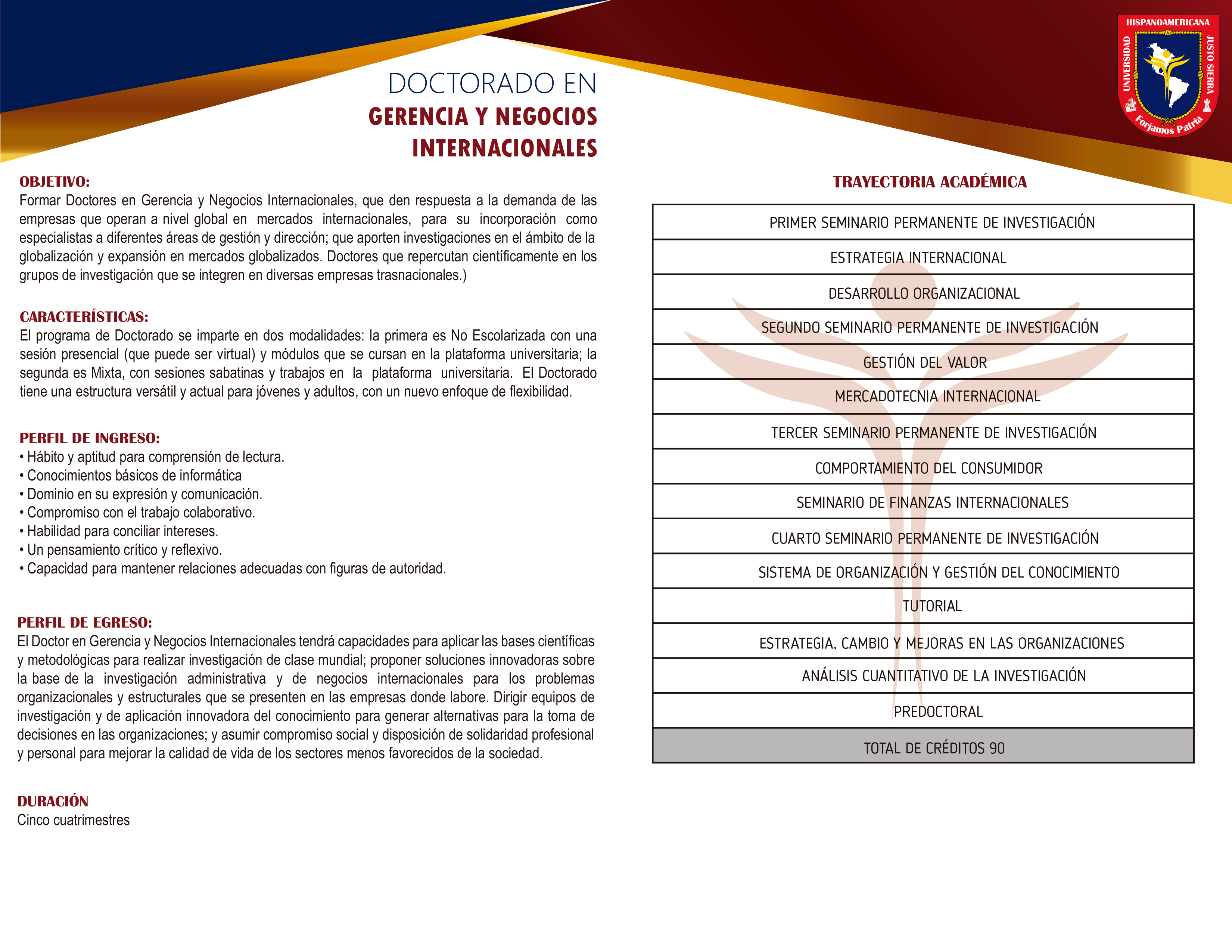El programa de Doctorado se ofrece en dos modalidades la primera es Mixta, con sesiones presenciales y trabajos en la plataforma educativa Institucional; la segunda es No Escolarizada (on-line), con una sesión presencial (que puede ser virtual) y módulos que se cursan en la plataforma de la Universidad. Ambas promueven la participación activa del alumno en su formación profesional y personal, mediante el aprendizaje individual, grupal y colaborativo.