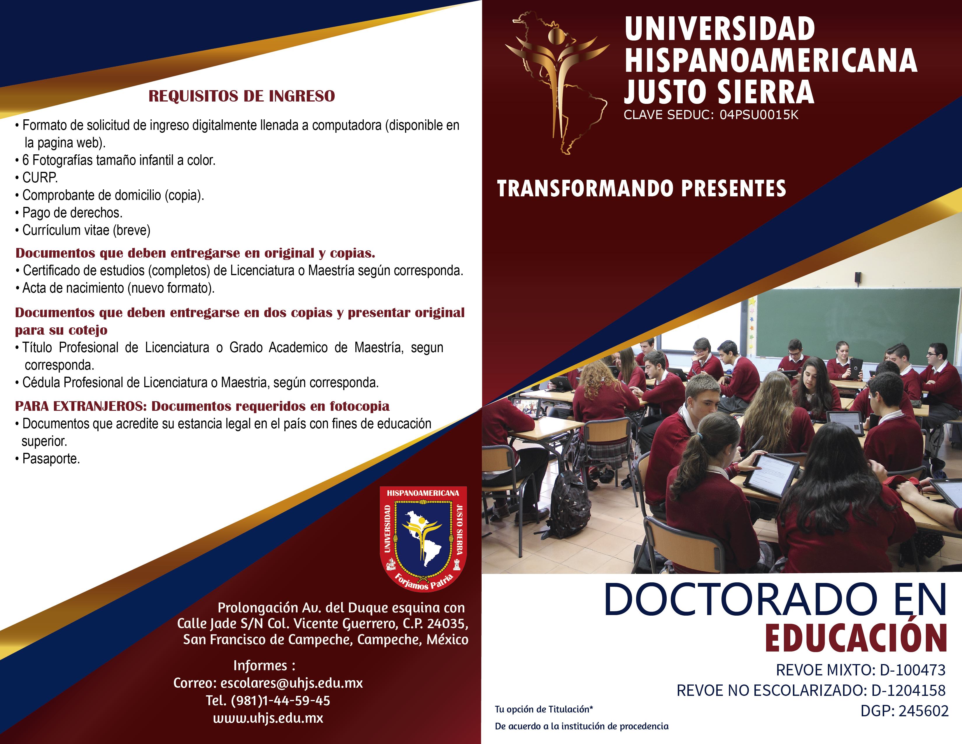 El aspirante a ingresar a este programa de Doctorado deberá contar con el Grado de Maestría en el área de la Educación o áreas afines.