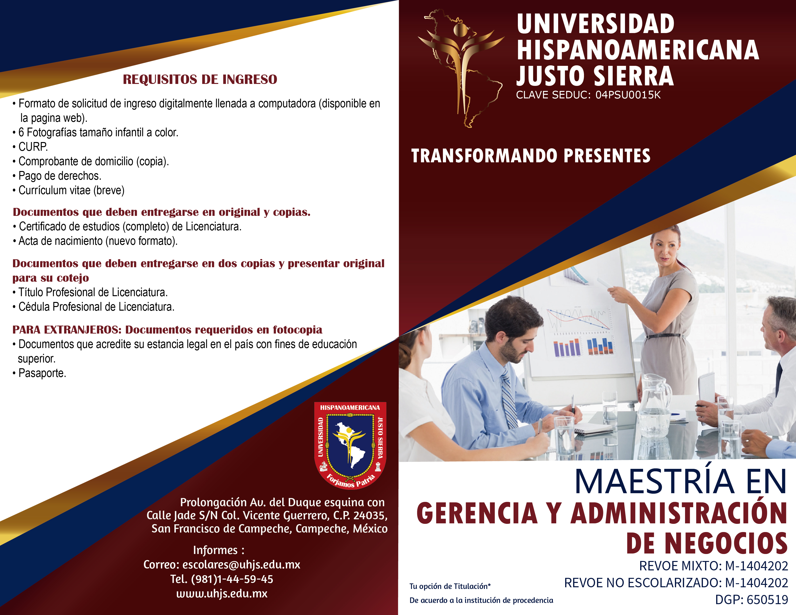 El programa de Gerencia y Administración de Negocios se imparte en dos modalidades: la Mixta con sesiones presenciales y trabajos extra-clase en la plataforma universitaria; la no escolarizada, con recursos y actividades en la plataforma, con la opción de asesoría presencial. Es una maestría con una estructura curricular de cuatro cuatrimestres.
